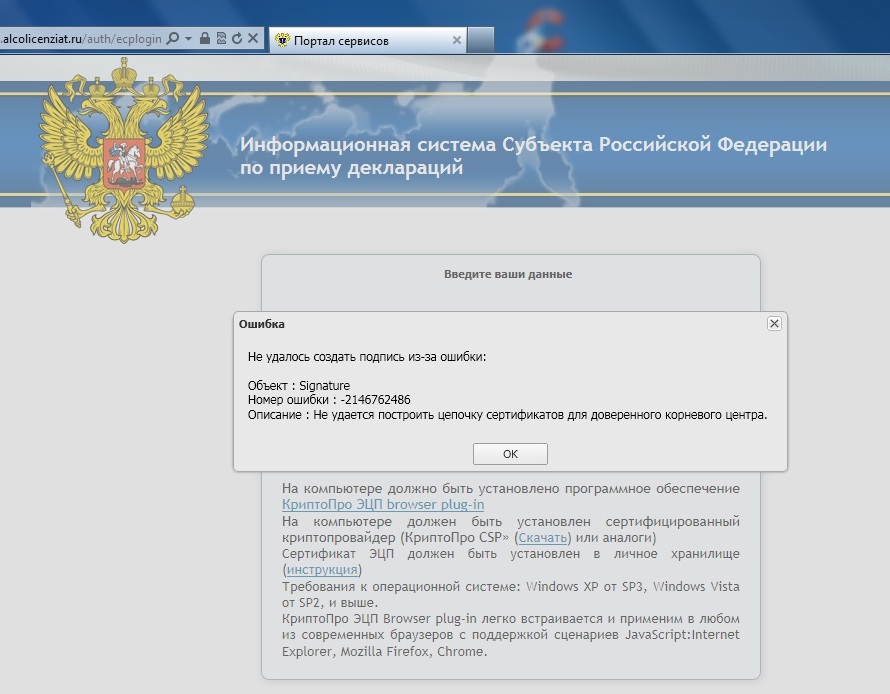 Подскажите заходу на портал под логином и паролем, потом нажимаю на сданные декларации, и появляется вход под сертификатом, и появляется ошибка. Подскажите чего еще не хватает? Весь вечер бьюсь.Вложение 57570