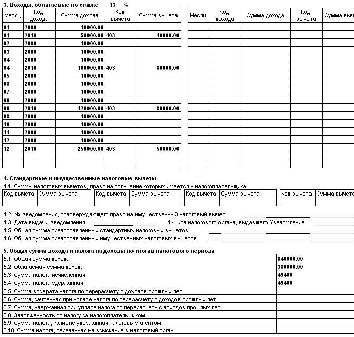 У меня в течении года работал стажер адвоката, потом стал адвокатом и вошел в коллегию. Заполняю 2-НДФЛ добавляю код дохода 2010 и вычет 403, но так же там уже есть доход по коду 2000 так как он получал заработную плату. Проблема в том что при сохранении у меня проф. вычет перемещается к строке с кодом дохода 2000 и справка формируется с ошибкой. Неужели придется две декларации отправлять на одно и тоже лицо.
