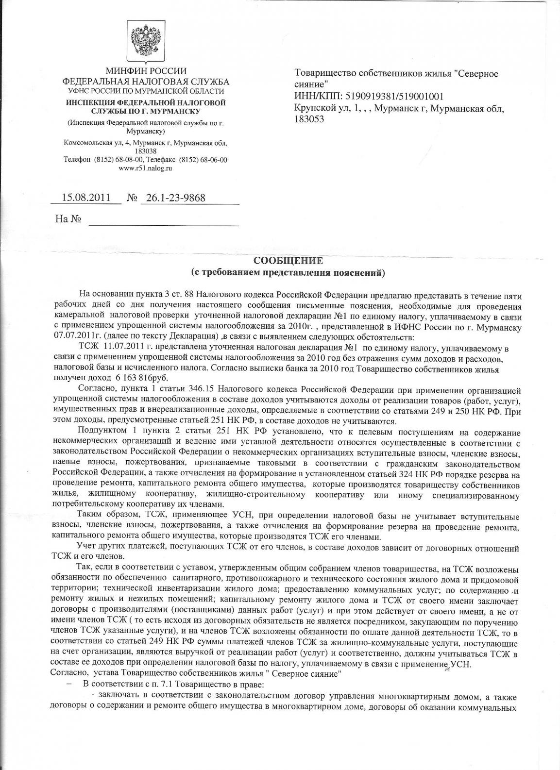А в этом письме прямо противоположное, т.е., для ТСЖ КУ это объект для налогообложения.
